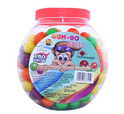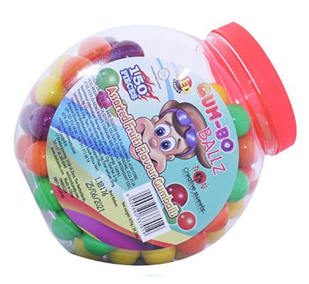 Hard Candy balls with bubblegum center and a fruity flavor.