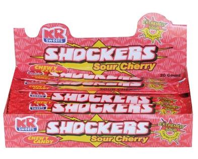Sour cherry flavored fizzy chewy candy bars.