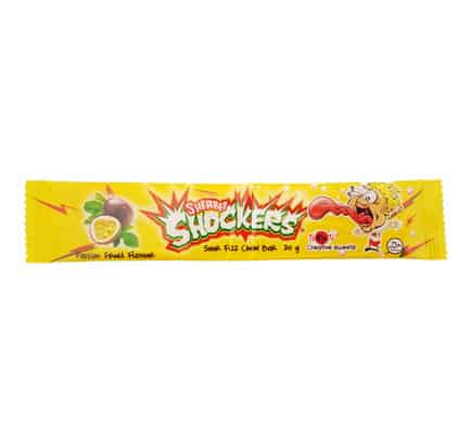 Sour passion fruit flavored fizzy chewy candy bars.